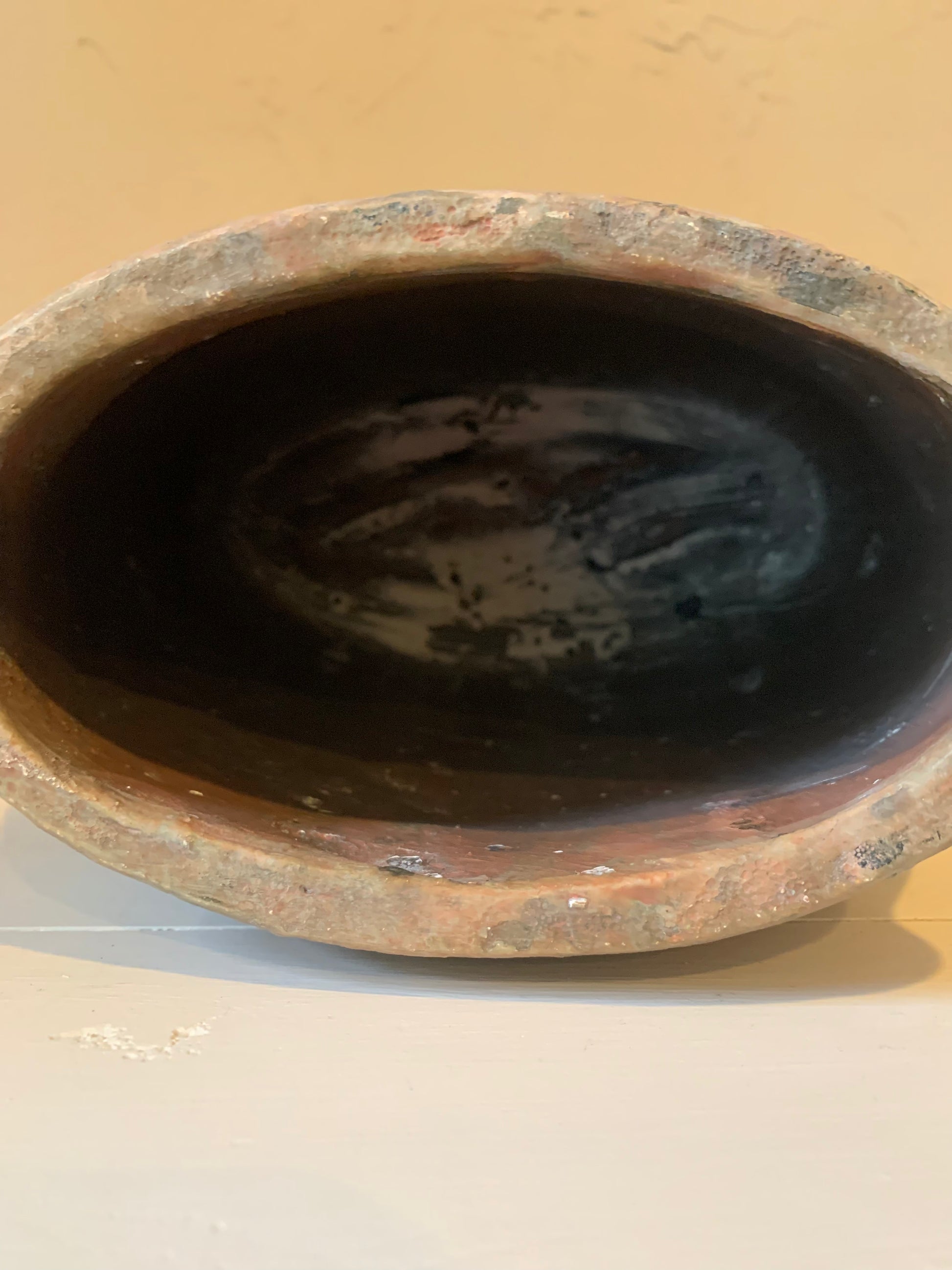 - Measures 8” high; width at top 6.5” and at bottom 9”; opening is 4” deep.